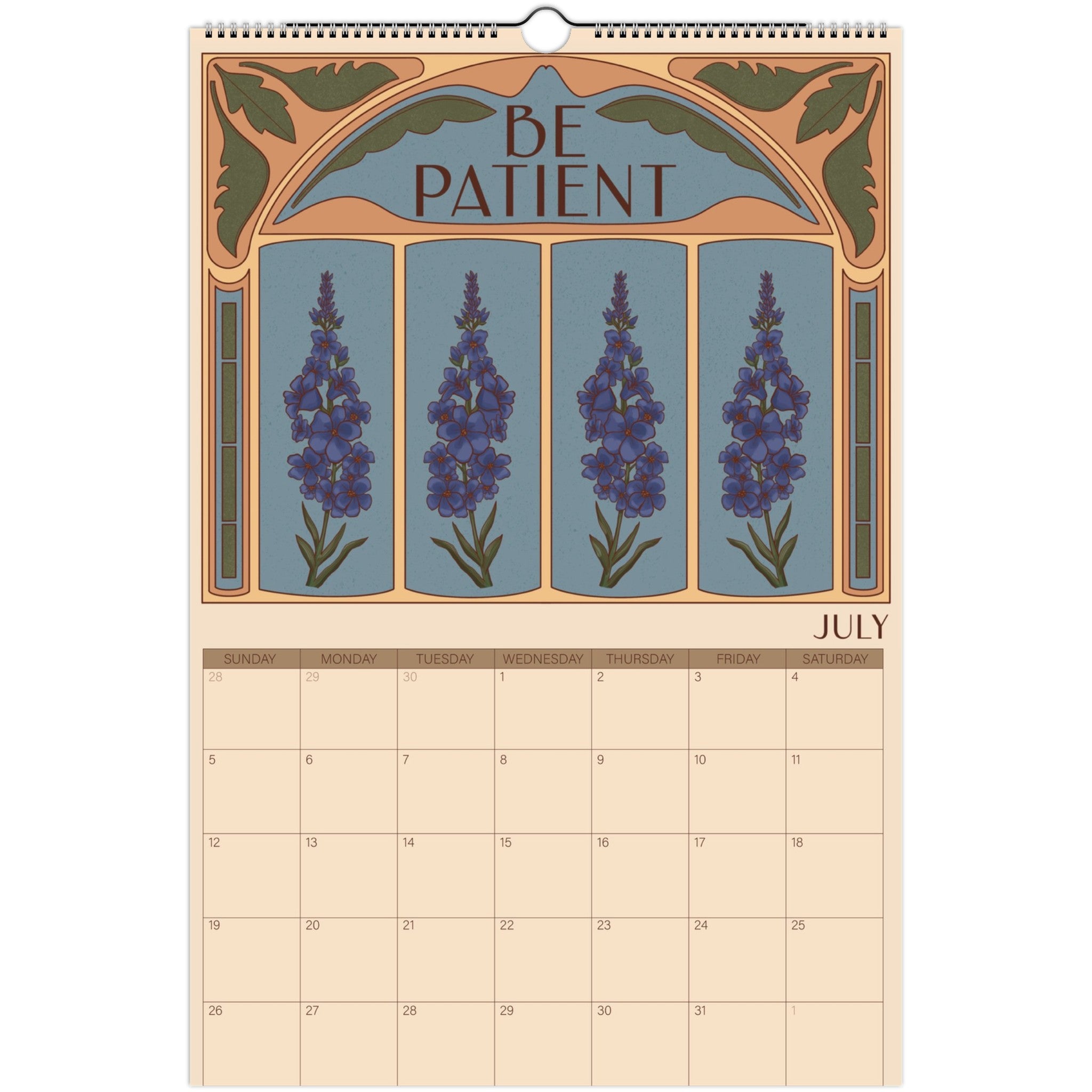 This calendar was inspired by daily affirmations I speak to our daughter to "Be A Good Human" and so this calendar came to life to share that with the world. Each design has shading and texture incorporating a message and monthly birth flowers in my modern Art Nouveau style and warm colors.