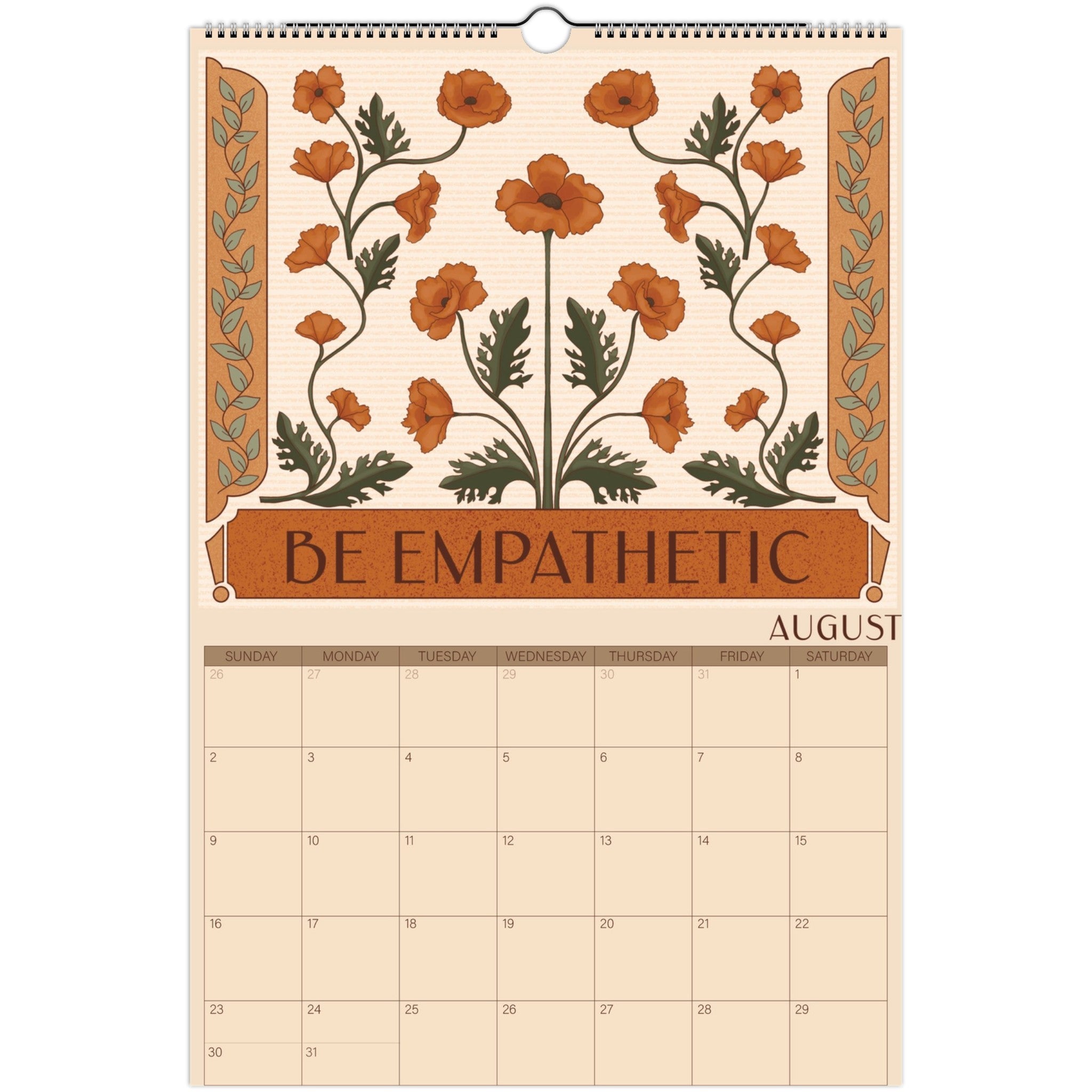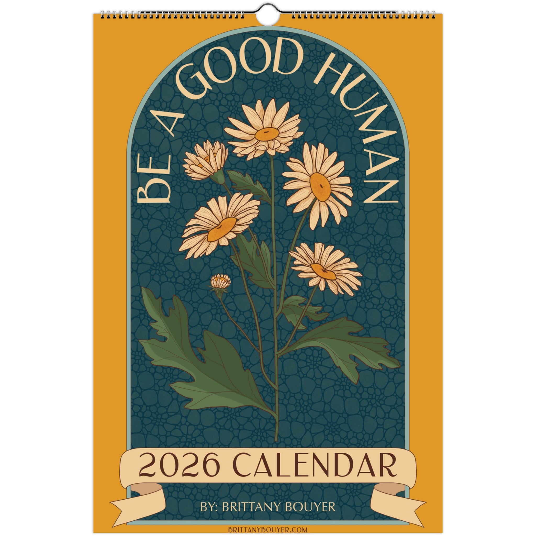 "Be A Good Human" Art Nouveau Style Floral 2026 Wall Calendar